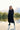Long sleeve, midi length flared dress with a deep v neckline and a front pleat.