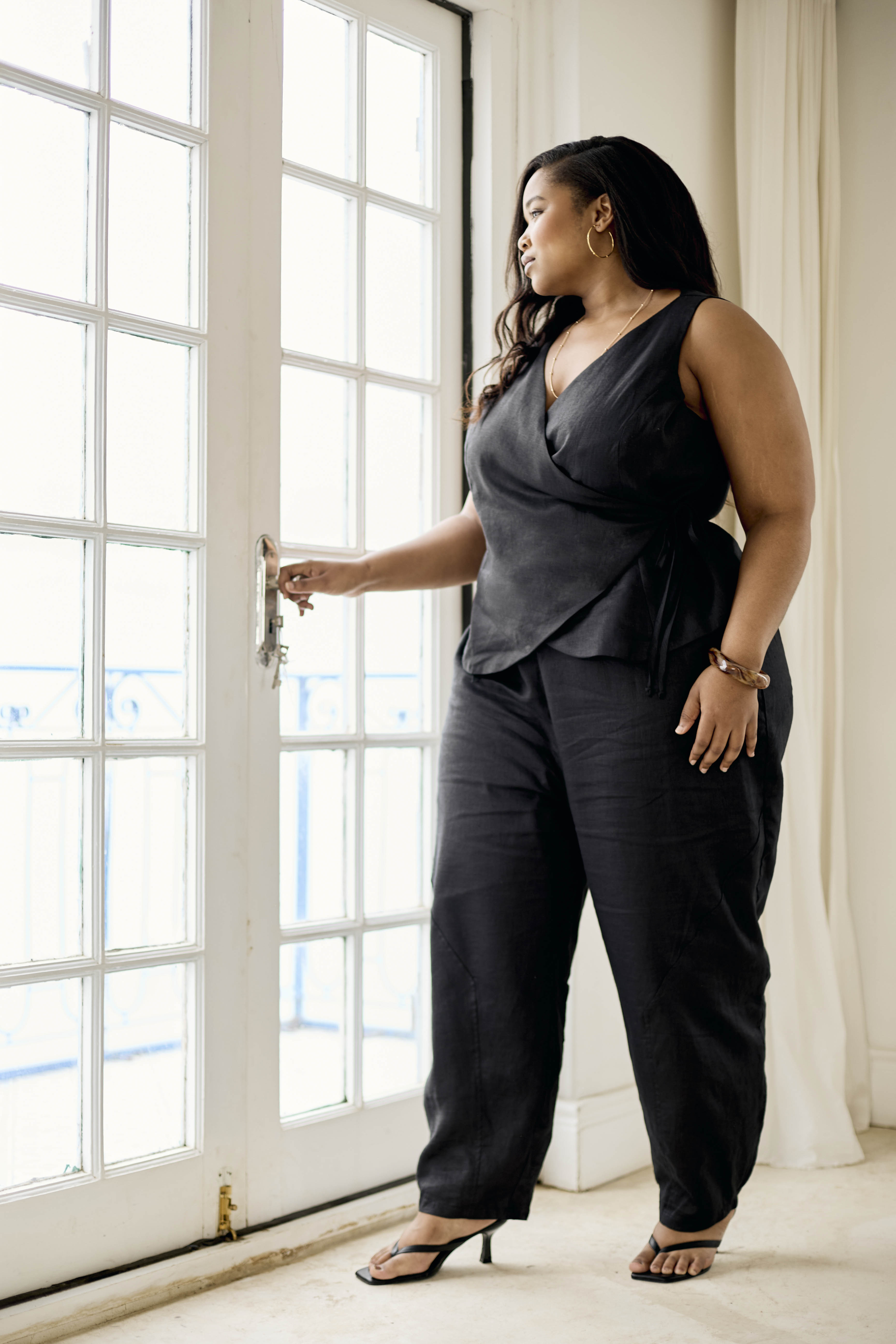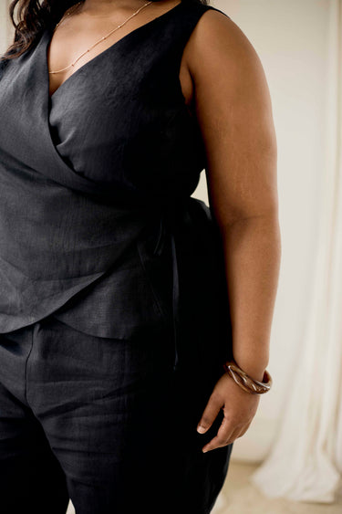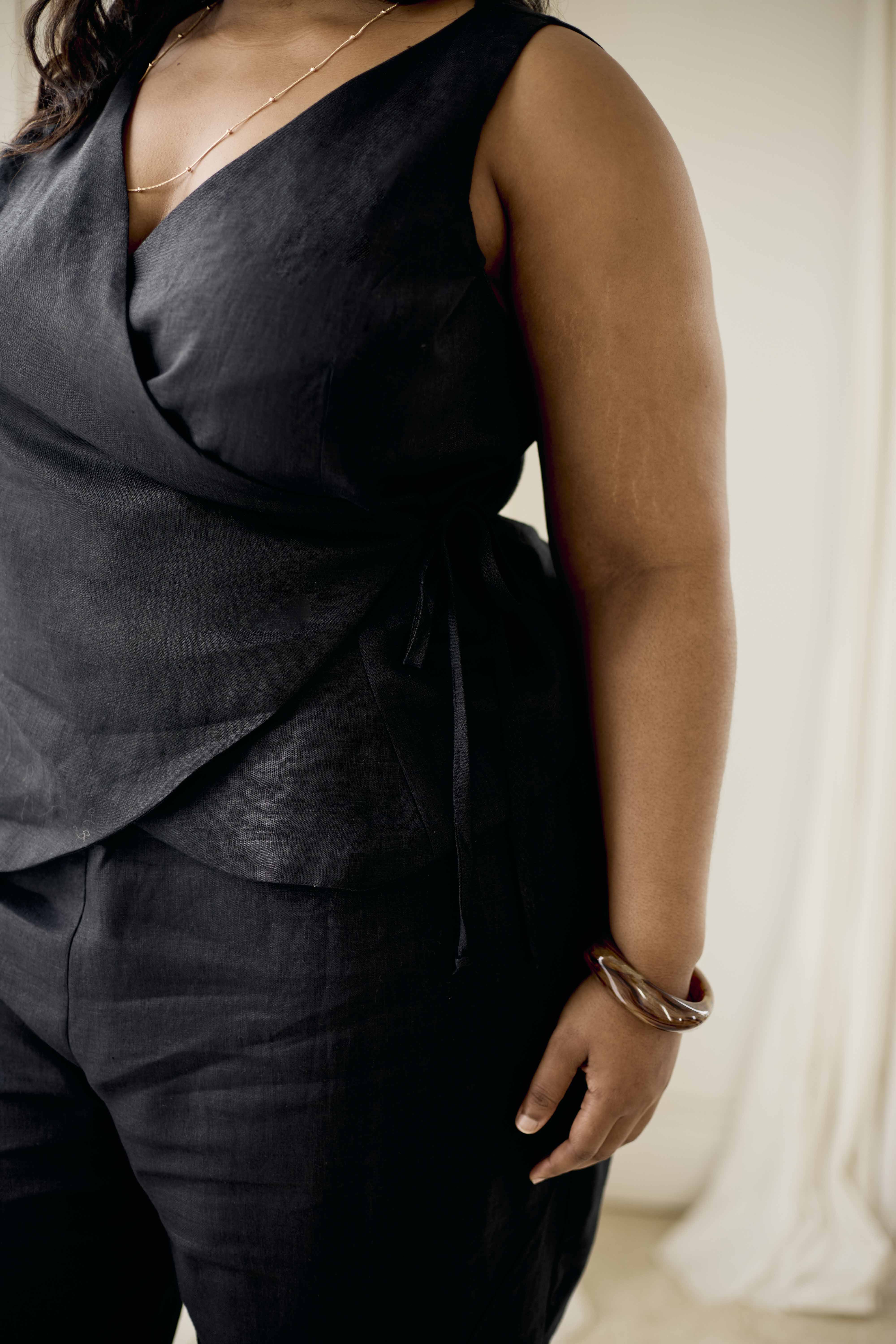 Linen Wrap Top | Black