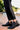 Ankle shoe with a flat stacked heel, pointed toe and side cut outs.