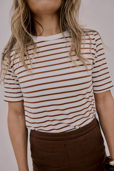 Essential Cotton Tee | Choc and White Stripe
