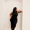 Racer shape fitted dress with front slit that has an adjustable height by an invisible zip.